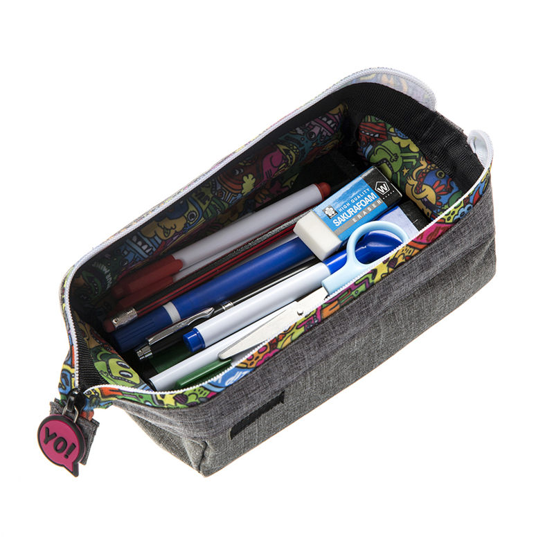 zrobić miejsce na ten uderzający ołówek torebka / makijaż Torba z szerokim, ustrukturalnym otworem i designem szczegóły. Kontrastujące, drukowane zamek zapewnia wszystkie swoje osobiste materiały przechowywane bezpiecznie w środku. Po otwarciu jesteś Przywitany z snazzy, kolorową podszewkę, która bierze twoją grę do przechowywania na zupełnie nowy poziom Fun.outFitted Z wytrzymałym, teksturowaną dolną i zmywalną konstrukcją poliestrową, to makijaż jest gwarantowany przetrwanie konkurencji. To " Doskonale rozmiar, aby pojawić się do plecaka, torebki lub torby.